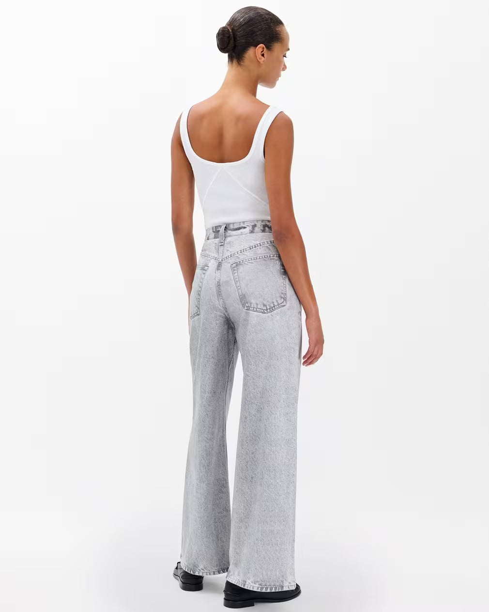 Miramar, our revolutionary printing technique, makes any material look like denim. These Sofie pants are cut and sewn from cotton terry cloth that's ultra-soft on the inside and printed on the outside to look like your favorite jeans. Featuring super-wide legs with flared hems that hit at the ankle, plus functional belt loops, front scoop pockets, and a zip fly with a button closure, the high-rise style further achieves its comfortable fit and feel with the other pockets and denim details digitally printed on the fabric.