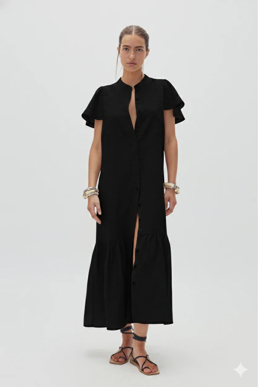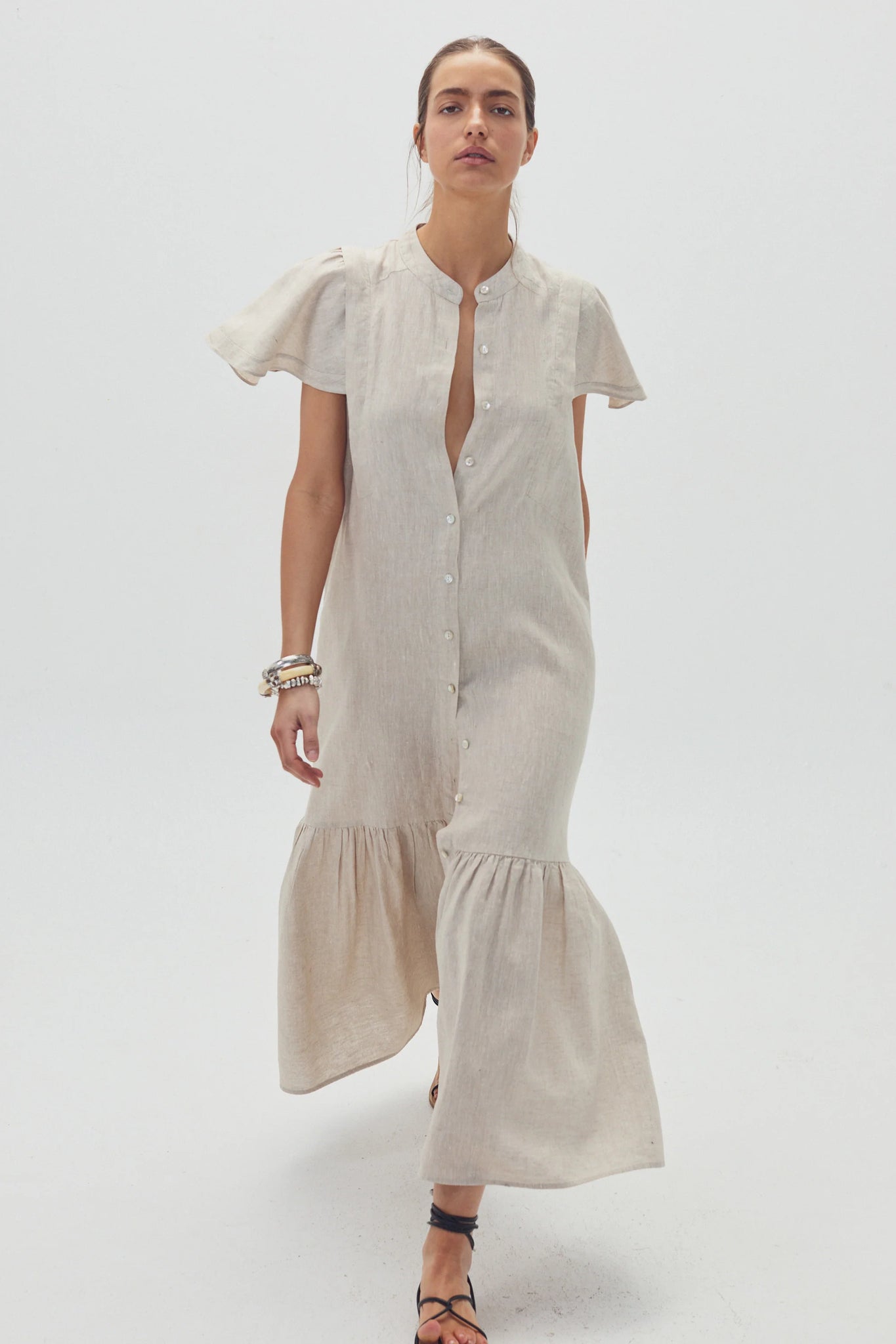 Our new Willow Dress is so fresh and feminine you'll want to wear it constantly. The flutter detail at the shoulders falls like a short sleeve, giving it an original and super elegant touch, while its mandarin collar and relaxed fit with gathering at the hem make it incredibly comfortable. It's crafted from our characteristic 100% natural linen, pre-washed and softened, which makes it lightweight and very soft to the touch.