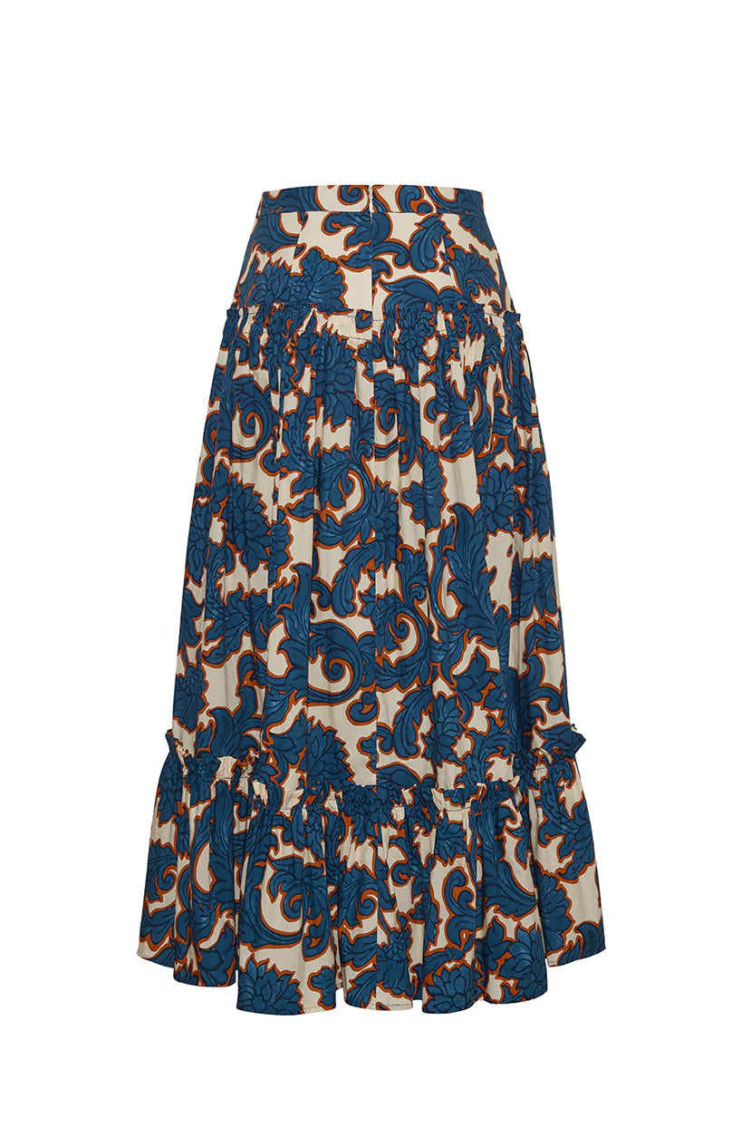 The Tisbury Skirt balances a bohemian spirit with a polished fit. The high-low, tiered ruffle skirt has just enough volume to feel special while being casual enough to knot your favorite t-shirt on top for a playful look.