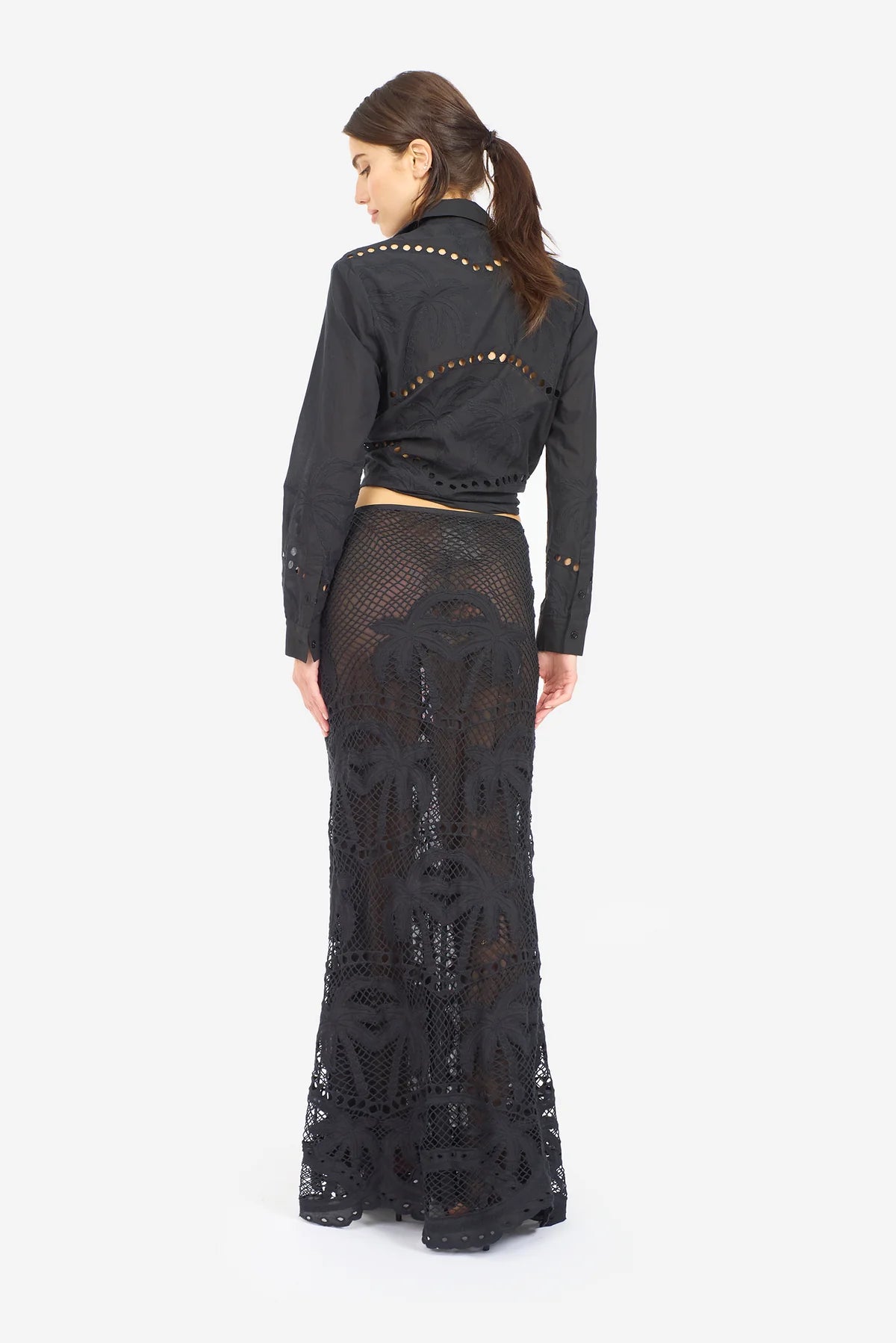 - Sheer cotton voile with palm embroidery