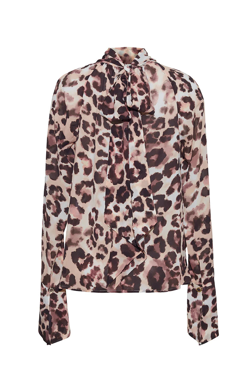 Mockneck, longsleeve, loose fitted blouse with self-ties at front