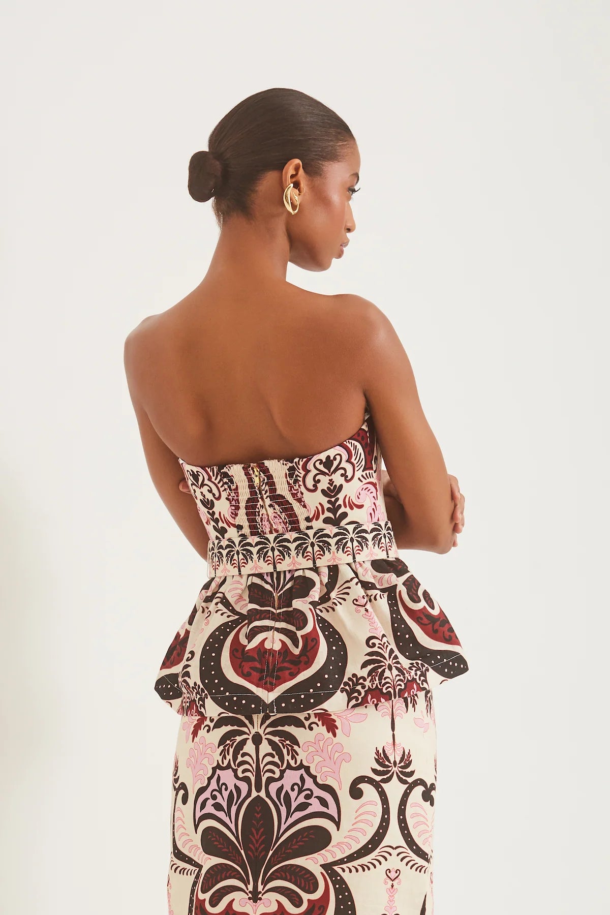 • Strapless peplum top with sweetheart neckline